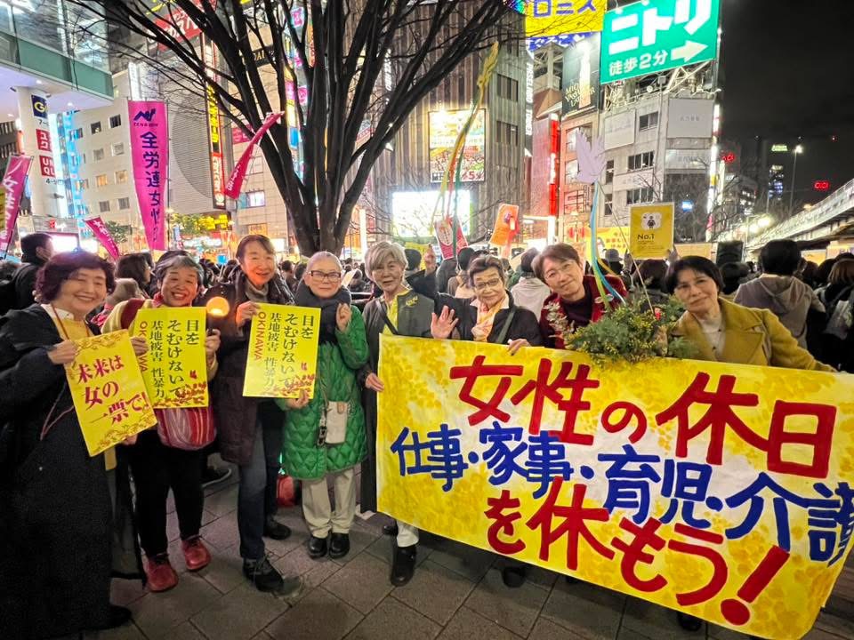 お知らせ, 活動ブログ 女性の休日マーチ 2026/03/06@新宿 ミモザの花束を持って参加しました。 辛淑玉さん、竹信三恵子さん、藍野美佳さん、田中優子さん、介護現場の方、学生の方,漫画家の方…スピーチ&musicは続き、みんなを元気にしてくれます。今日はステキな出会いをたくさんいただきました 「女性の休日 仕事・家事・育児・介護を休もう!」こちらは松井奈穂さんの作品。生き生き,のびのび、とてもいいでしょ。「狛江の垂れ幕いつでも書きますよー」と言っていただき感激 非正規公務員の「使い捨て」を許さない〜院内集会 第2回 性売買問題を考えるシンポジウム